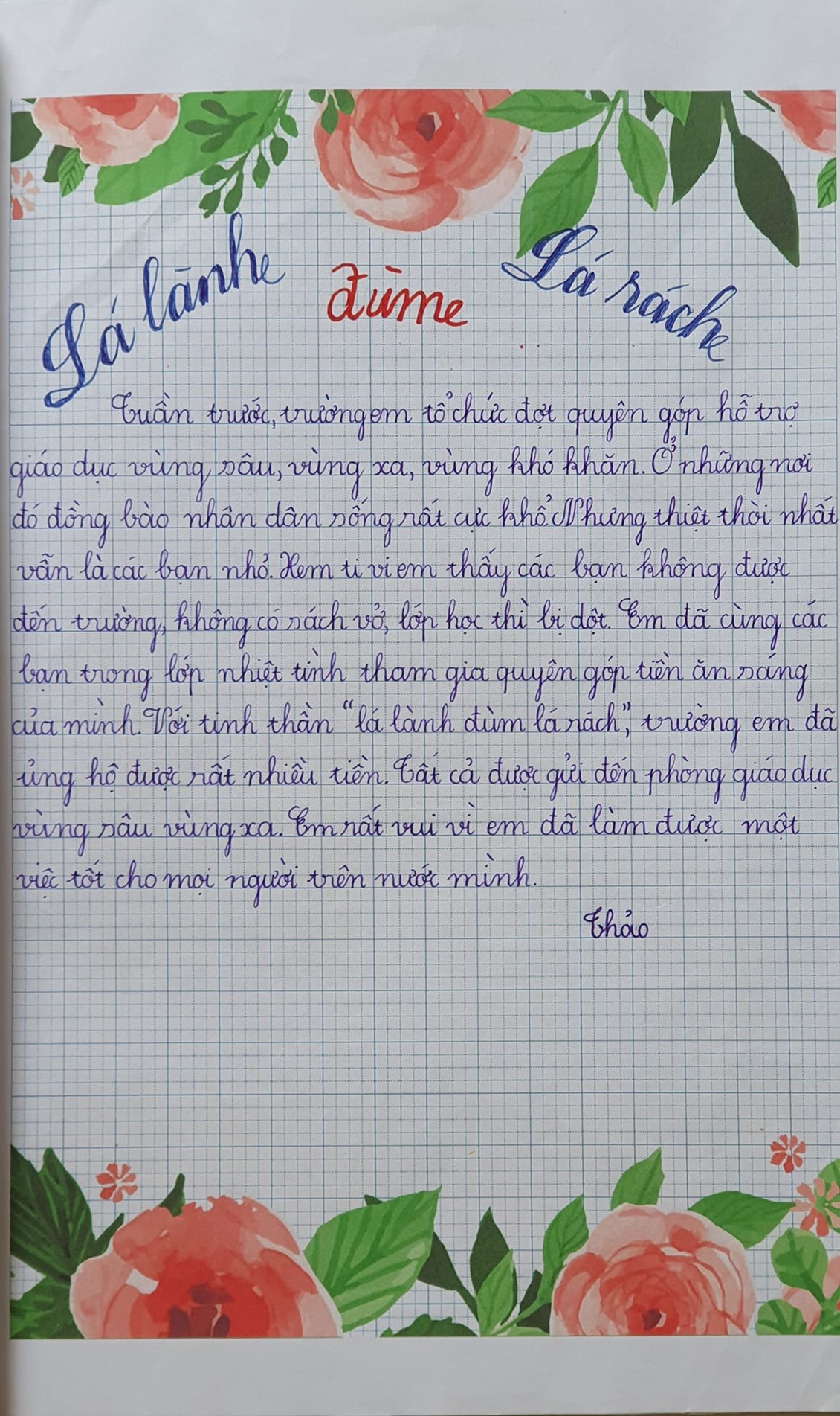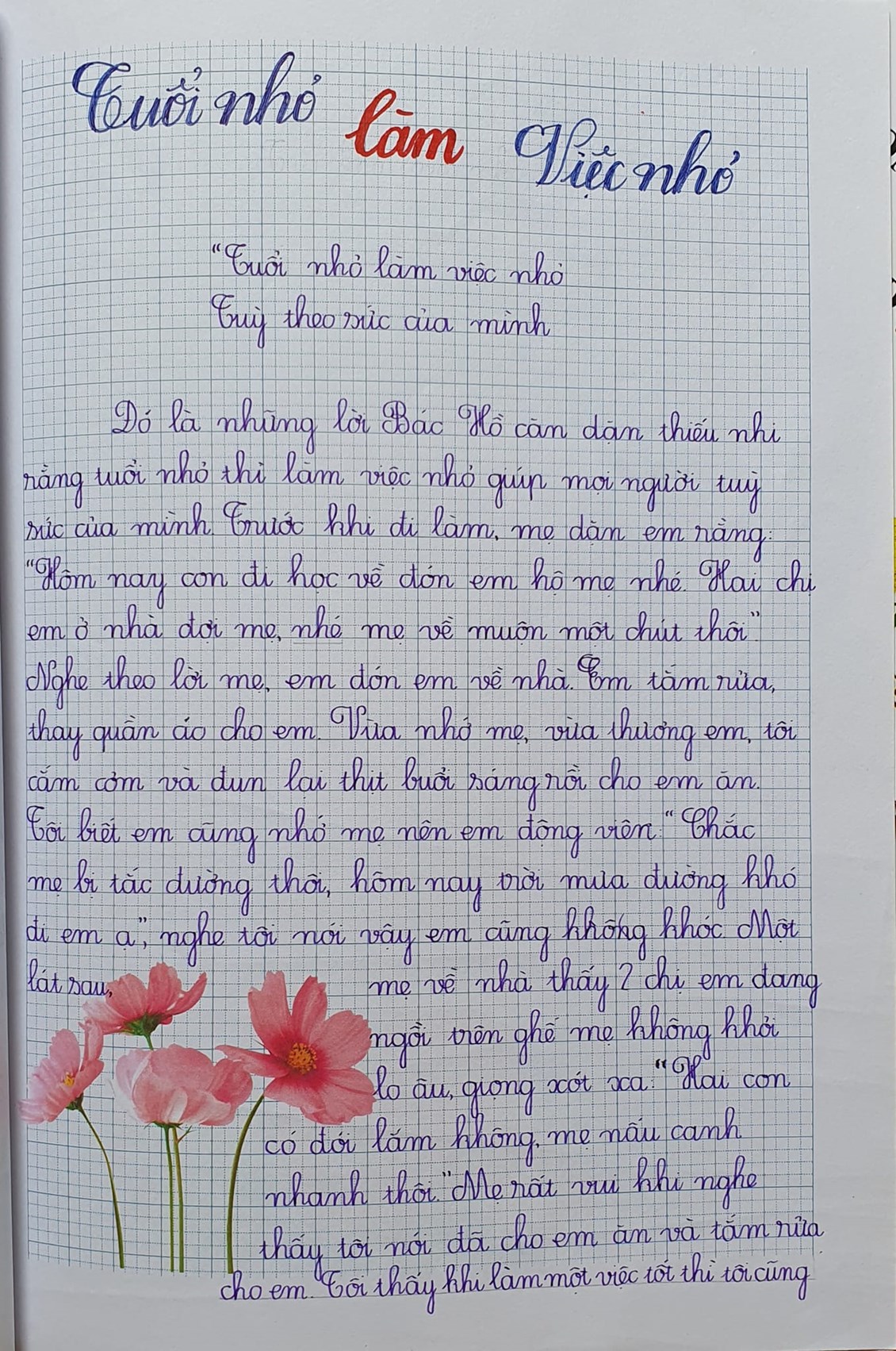 Bằng những hành động nhỏ, những việc làm thiết thực, các em đội viên, thiếu nhi trong toàn Liên đội Tiểu học Nguyễn Khuyến thi đua nhau học tập tốt, rèn luyện chăm để phấn đấu trở thành con ngoan, trò giỏi, xứng cháu Bác Hồ kính yêu./.