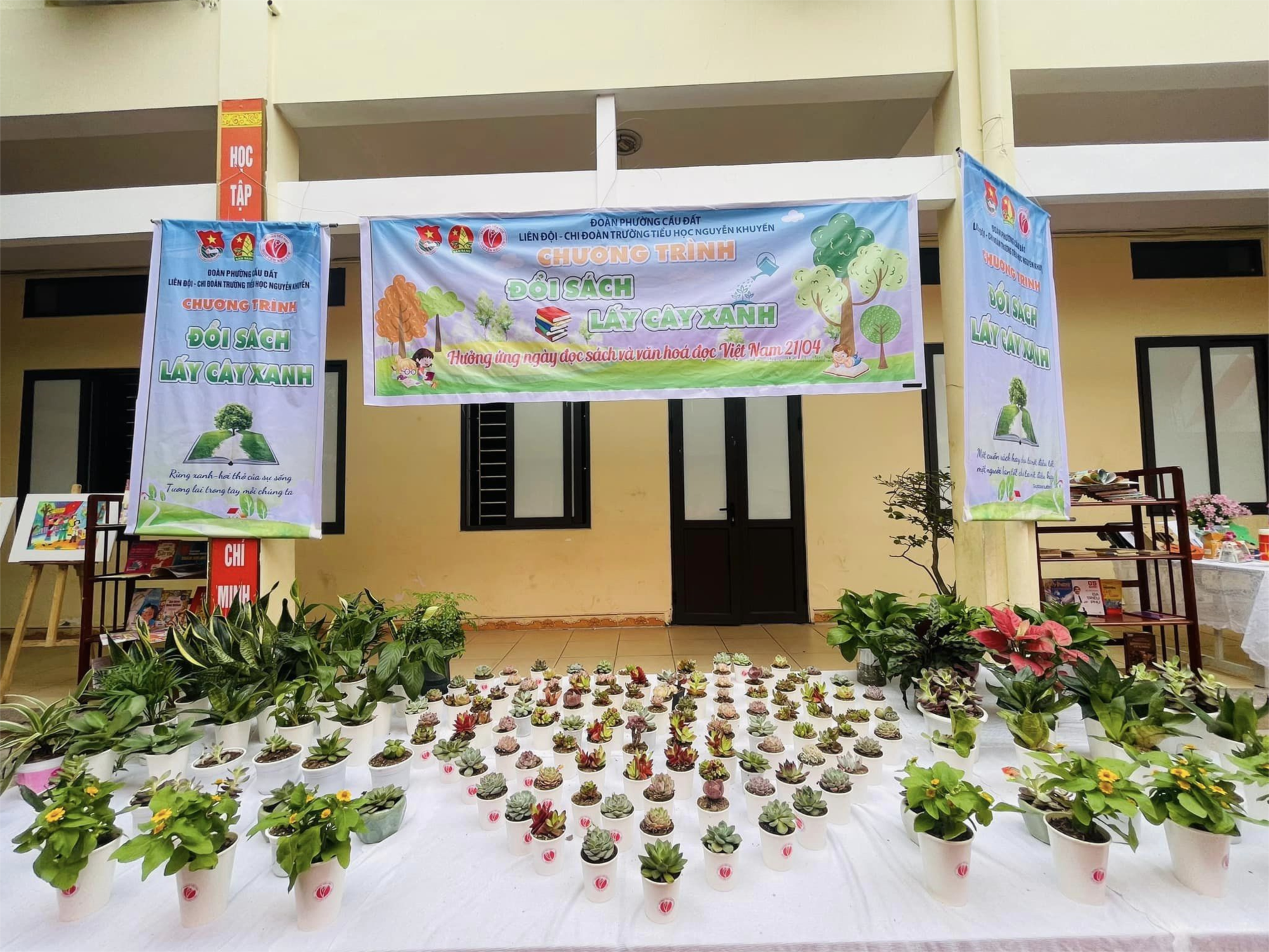 Chiều ngày 17/4/2024, Chi đoàn trường Tiểu học Nguyễn Khuyến tổ chức hoạt động “Đổi sách lấy cây xanh”Với những cuốn sách, quyển truyện các em mang đến sẽ đổi thành cây xanh