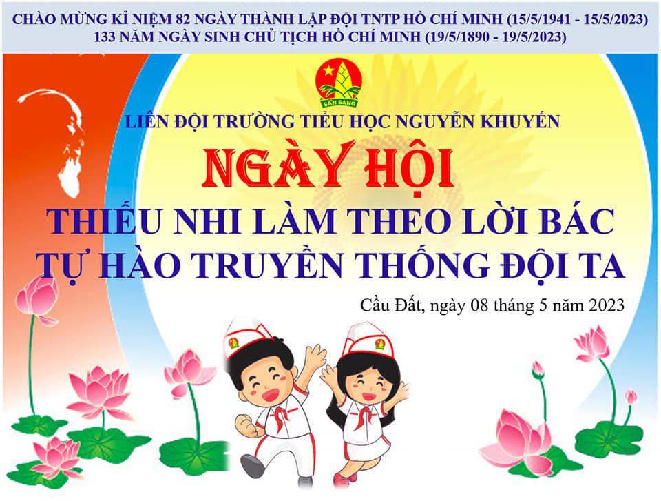 Hướng tới chào mừng kỉ niệm 82 năm Ngày thành lập Đội TNTP Hồ Chí Minh (15/5/1941 - 15/5/2023) 133 năm Ngày sinh Chủ tịch Hồ Chí Minh (19/5/1890 - 19/5/2023), các chi đội và các lớp nhi đồng của Liên đội trường TH Nguyễn Khuyến đã tổ chức sinh hoạt Đội với chủ đề "Ngày hội thiếu nhi làm theo lời Bác" - "Tự hào truyền thống Đội ta".