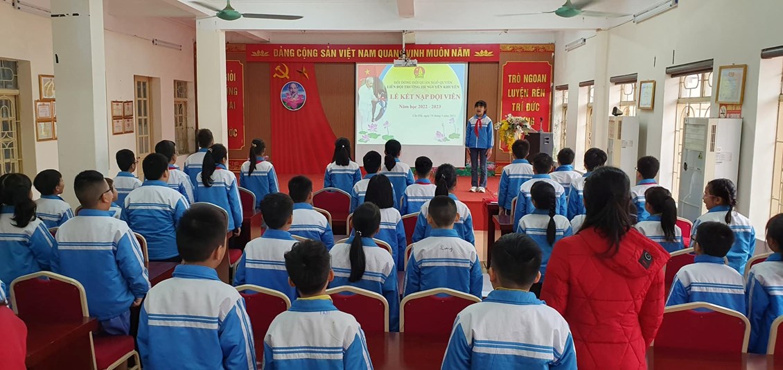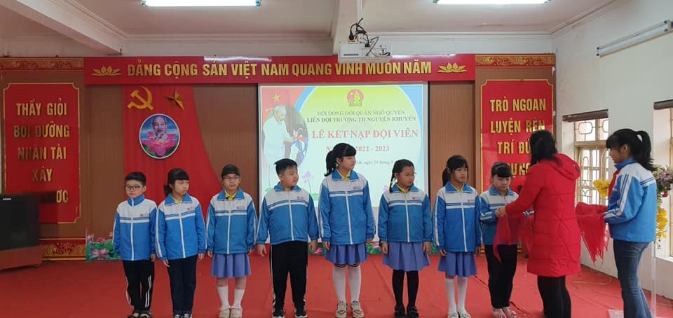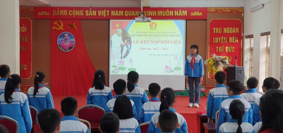 Chiều ngày 24/3/2023, Liên đội Tiểu Học Nguyễn Khuyến đã tổ chức kết nạp đội viên mới cho các em nhi đồng khối 3. Đội TNTP Hồ Chí Minh là tổ chức của thiếu nhi Việt Nam do Đảng Cộng sản Việt Nam và Chủ tịch Hồ Chí Minh sáng lập, Đoàn TNCS Hồ Chí Minh phụ trách. Đội TNTP Hồ Chí Minh lấy 5 điều Bác Hồ dạy thiếu niên, nhi đồng làm mục tiêu phấn đấu, rèn luyện cho đội viên, giúp đỡ thiếu nhi trong học tập, hoạt động vui chơi, thực hiện quyền và bổn phận theo Công ước Liên hợp quốc về Quyền Trẻ em, Luật Trẻ em.
