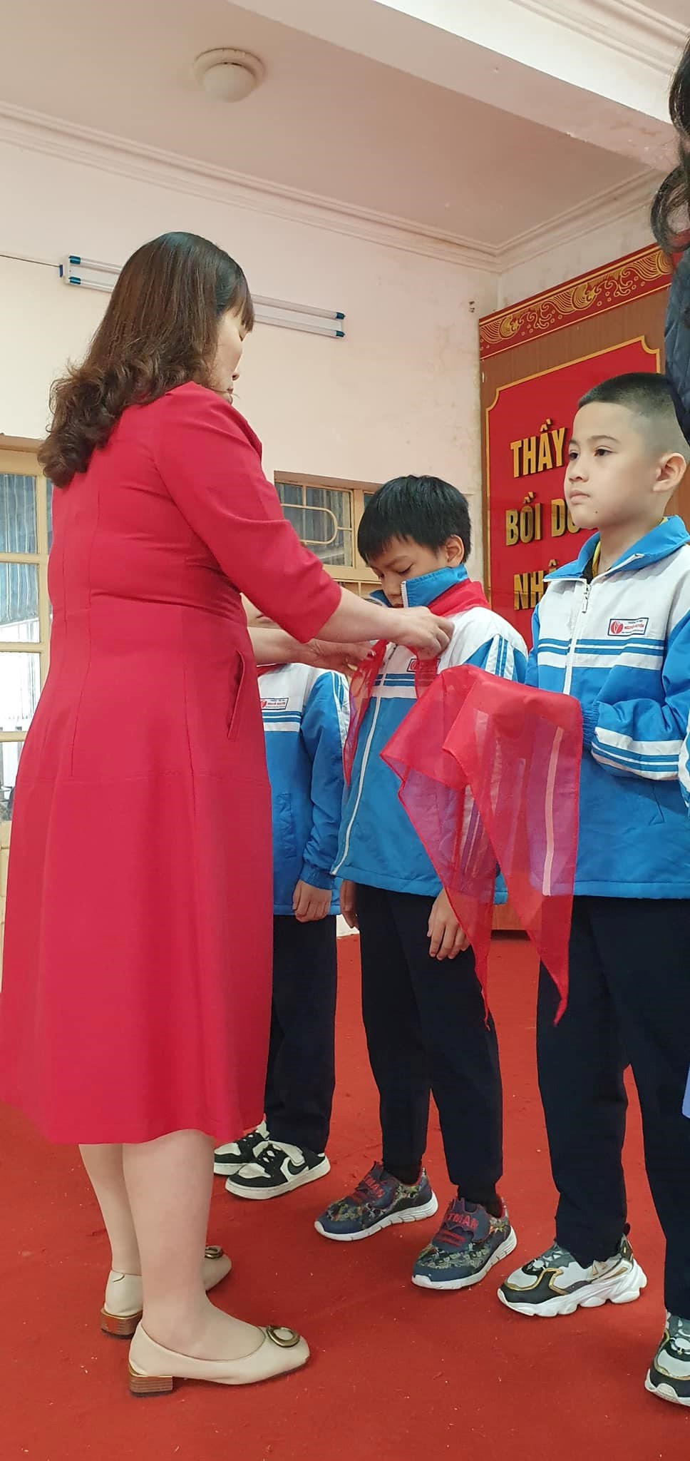 Màu khăn đỏ như nhắc nhở các em phải không ngừng phấn đấu, tư dưỡng và rèn luyện để trở thành Đội viên tốt, xứng đáng là con ngoan, trò giỏi, cháu Bác Hồ kính yêu. Giây phút thiêng liêng này sẽ mãi là kỷ niệm đẹp của tuổi học trò.