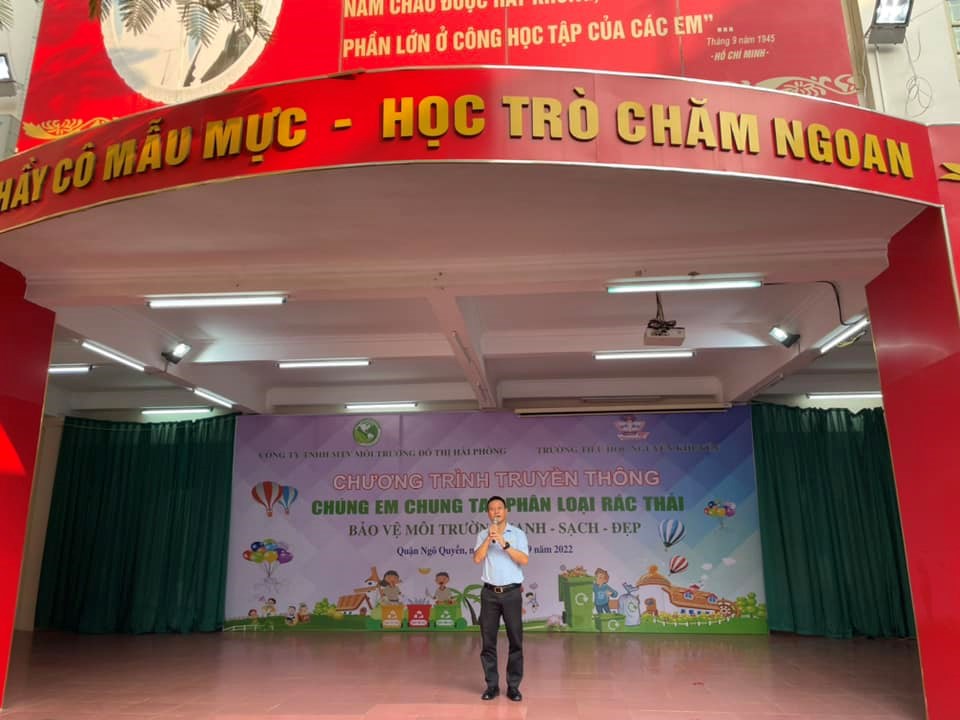 Tham dự buổi tuyên truyền có Ông Phạm Thanh Hà – Phó trưởng phòng điều hành sản xuất - Tổ trưởng tổ công tác tuyên truyền công ty. Ông Trần Văn Tân - Giám đốc xí nghiệp Môi trường Ngô Quyền. Về phía nhà trường, có Ông Phạm Văn Tuấn – Bí thư Chi bộ - Hiệu