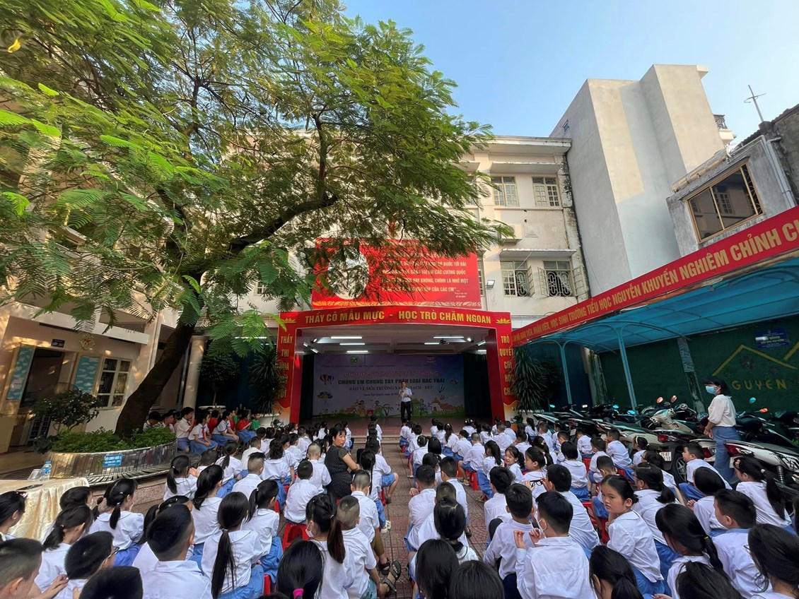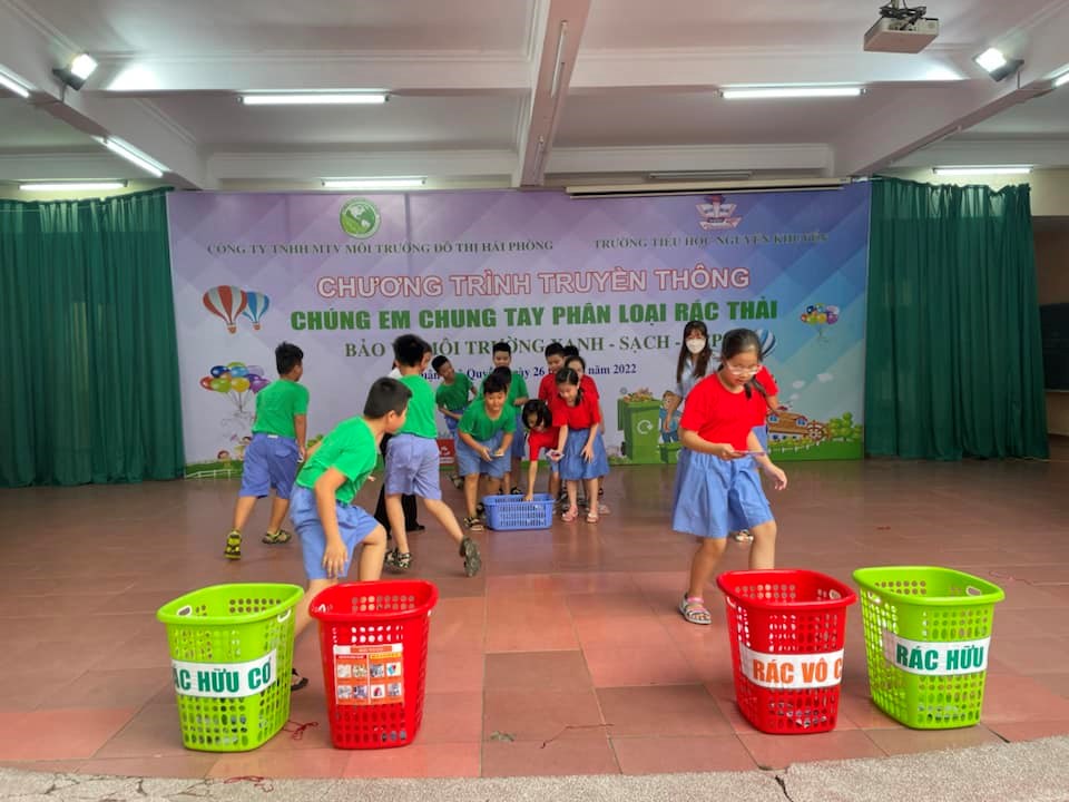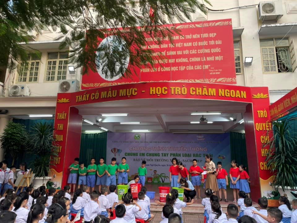 Chiều ngày 26/09/2022, Trường Tiểu học Nguyễn Khuyến đã kết hợp với Công ty TNHH MTV Môi trường đô thị Hải Phòng tổ chức hoạt động “Tuyên truyền giảm thiểu chất thải nhựa, phân loại rác thải sinh hoạt tại nguồn”.