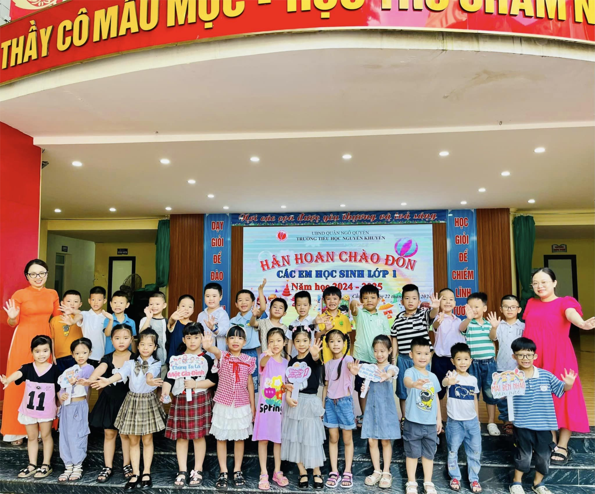 Từ hôm nay, các em học sinh lớp 1 sẽ cùng nhau học tập, cùng nhau vui chơi dưới mái trường Tiểu học Nguyễn Khuyến – ngôi trường với bề dày thành tích trong nhiều năm qua, với đội ngũ các thầy cô giáo tâm huyết, yêu nghề mến trẻ. Trường Tiểu học Nguyễn Khuyến sẽ là NƠI CÁC EM ĐƯỢC YÊU THƯƠNG VÀ TOẢ SÁNG, là mái nhà thứ hai, là nơi nuôi dưỡng những ước mơ tuổi thơ của các em. Chúc các em một năm học mới đạt được nhiều thành tích – mỗi em sẽ là một bông hoa đẹp góp phần tô điểm cho vườn hoa Nguyễn Khuyến thêm rực rỡ.