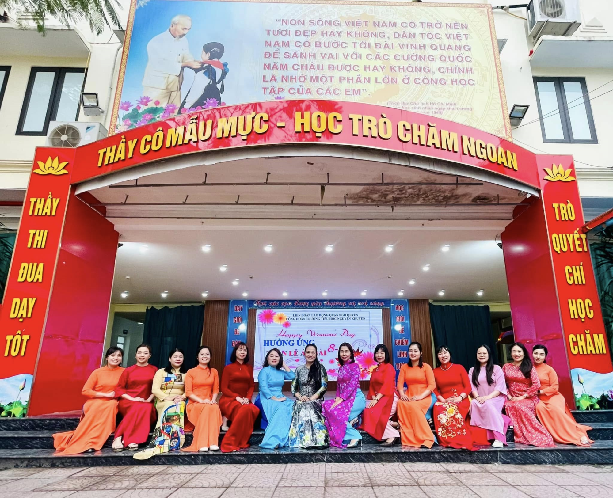 Công đoàn trường Tiểu học Nguyễn Khuyến kết hợp với chính quyền tổ chức buổi gặp mặt toàn thể CB,GV-NV trong không khí vui tươi, đầm ấm. BGH và Công đoàn nhà trường đã gửi lời chúc mừng ấm áp tới toàn thể CB,GV-NV nữ, ghi nhận những đóng góp và tôn vinh vẻ đẹp của phụ nữ; đánh giá cao vai trò của phụ nữ nói chung, động viên, khích lệ CB,GV-NV nữ nói riêng đã không ngừng phấn đấu trong các phong trào thi đua "Giỏi việc nước, đảm việc nhà", "Giáo viên tích cực học tập, lao động sáng tạo, xây dựng gia đình hạnh phúc". Đồng thời nhà trường cũng mong muốn rằng trong thời gian tới, toàn thể nữ CB,GV-NV tiếp tục phát huy truyền thống của người phụ nữ Việt Nam, ngoài việc thực hiện tốt thiên chức, vai trò, nhiệm vụ của mình, còn không ngừng học hỏi và rèn luyện để hoàn thiện về tri thức, kỹ năng, nắm bắt và kịp thời đáp ứng sự phát triển của thời đại mới. Cũng trong dịp này, thầy và trò nhà trường đã tưng bừng hưởng ứng Tuần lễ áo dài, Tặng áo dài trao gửi yêu thương, tìm hiểu về lịch sử, ý nghĩa của ngày 8/3 thông qua những giờ học rất thú vị do các thầy cô giáo dẫn dắt. Qua đó, các em hiểu thêm rằng: Ngày Quốc tế Phụ nữ 8/3 là dịp để tôn vinh vẻ đẹp, khẳng định vai trò của phụ nữ trong xã hội và trong cuộc sống.