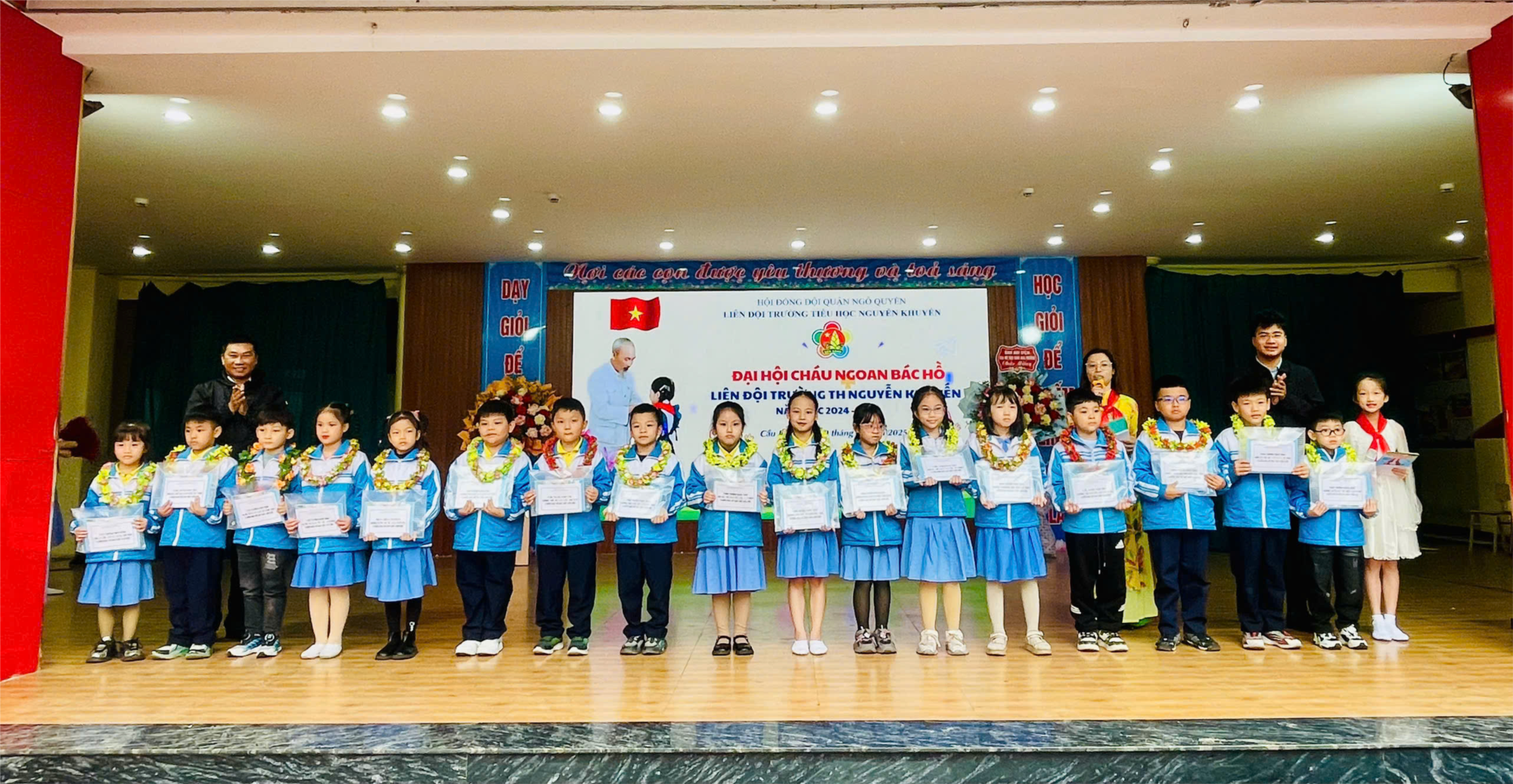 Thực hiện Chương trình công tác Đội và phong trào thiếu nhi năm học 2024 – 2025; Sáng ngày 20/02/2025 Liên đội trường Tiểu học Nguyễn Khuyến đã long trọng tổ chức Đại hội Cháu ngoan Bác Hồ năm học 2024 - 2025.